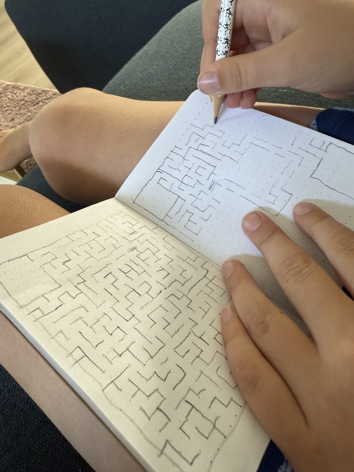 It all began when Morten gave Andreas (age 7) a small dot‑grid notebook he had received as swag from AppFigures at the Deep Dish Swift conference. Andreas immediately started drawing mazes in it, spending countless hours sketching during car trips and at home. That simple notebook became the spark that inspired the Miniotaur app.